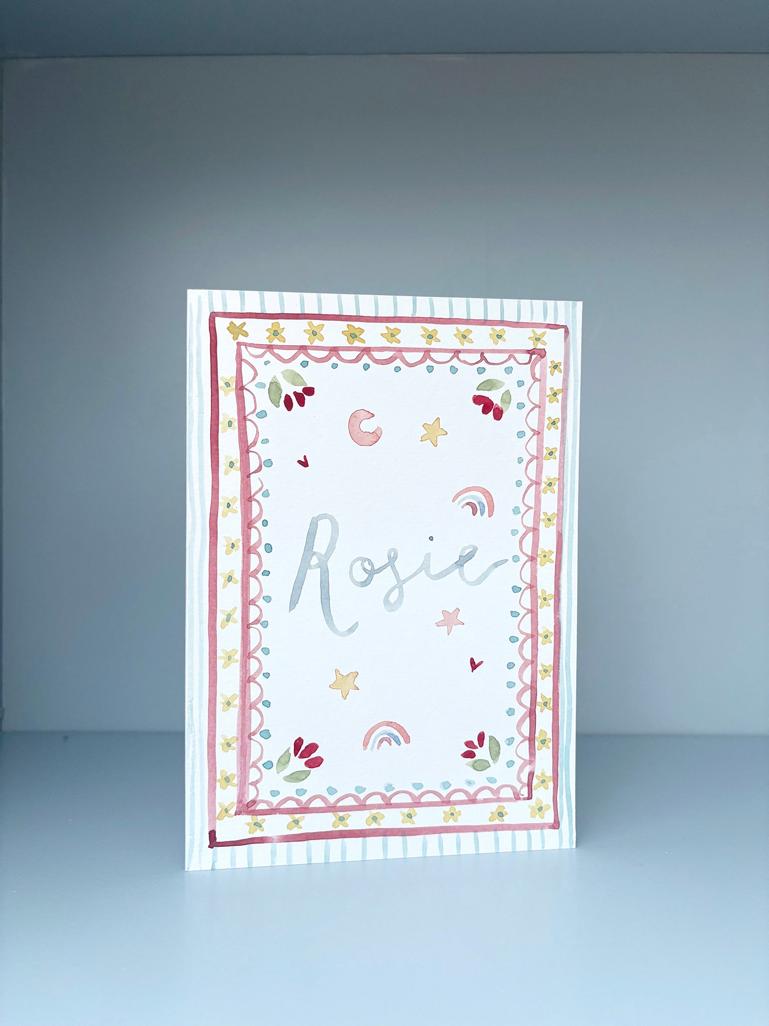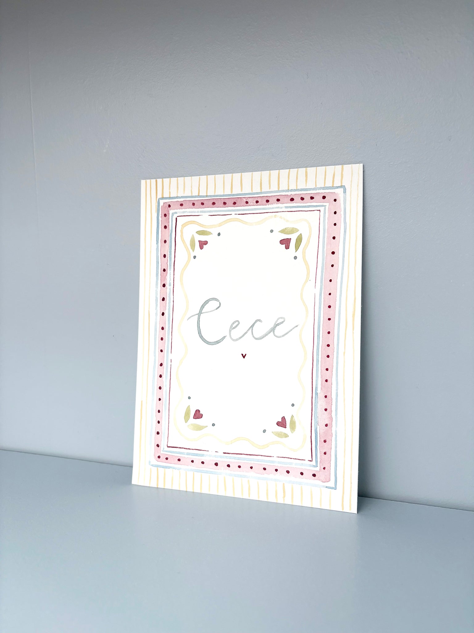 5x7 Greeting Card Style: Folded card with a front design and an interior space for a message. Envelope included. Still great for framing afterwards.